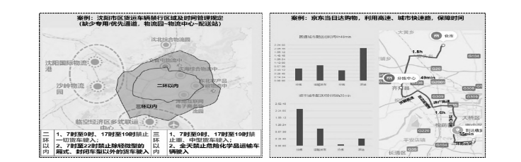 配送環(huán)節(jié)成為物流效率制約環(huán)節(jié),缺少快速配送通道規(guī)劃及組織保障[2]。沈陽、濟南物流配送時間案例如圖2所示。