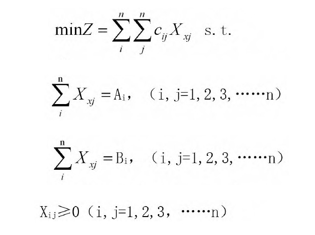 線性約束條件是指由變量x、y的一次不等式或者是方程式組成的不等式組,也可以理解為線性空間的約束條件。在電商平臺運營中,商品買賣是每日需要進行的交易活動,商品銷售量就是線性約束條件中的變量,為此,在電商平臺銷售的產(chǎn)品中,調(diào)配不同供應(yīng)生產(chǎn)地的商品時,需要考慮一些約束條件。第一,電商平臺中的不同產(chǎn)品有不同的供應(yīng)地或者供應(yīng)商,這些供應(yīng)地或者供應(yīng)商也存在一些約束條件,需要電商平臺在調(diào)配物流資源時,充分考慮其約束條件。一般情況下,供應(yīng)地或者供應(yīng)商的約束條件是假設(shè)電商平臺上某一個銷售商品的所有可供應(yīng)商能夠供應(yīng)的總和。第二,互聯(lián)網(wǎng)的普及推廣,不僅拓寬了電商平臺的銷售路徑,同時也大大便利了不同地區(qū)的消費者,這些消費者生活在不同的區(qū)域內(nèi)。將這些區(qū)域可以定義為電商平臺商品的需求地,這個需求地也會提出一些約束條件。通常情況下,需求地的約束條件主要是電商平臺上某一銷售商品的所有需求地想要購買的商品數(shù)量的總和。第三,電商平臺上的商品被分配的數(shù)量也有約束條件,主要是指電商平臺上某一銷售商品被配送到各個需求地的數(shù)量是非零的正整數(shù)。