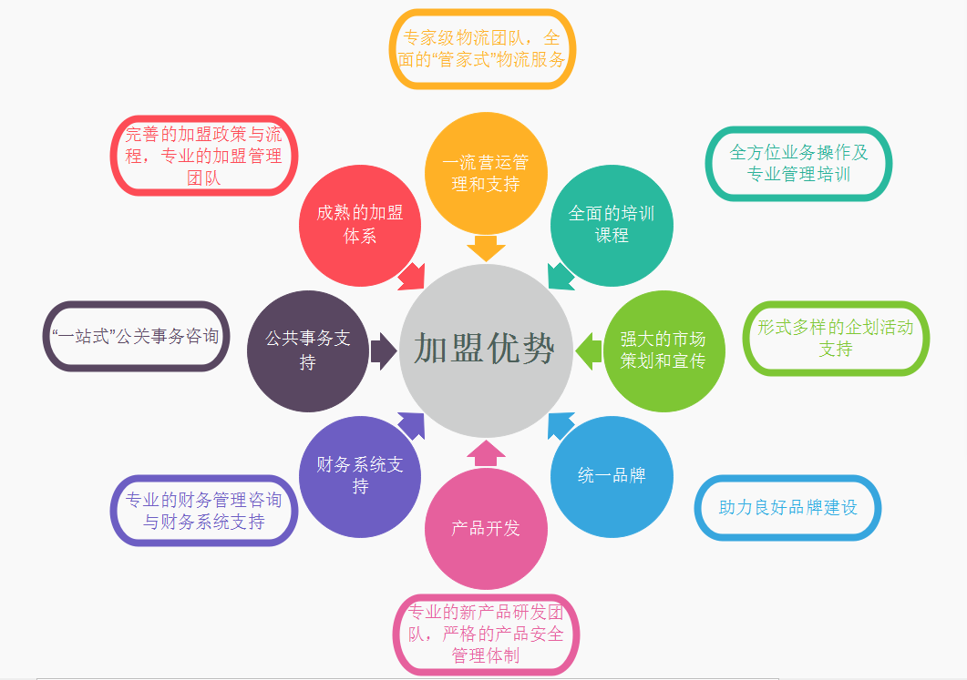 英脈物流實行區(qū)域加盟模式。區(qū)域加盟模式就是將某一片區(qū)域授權給通過了資格評估的加盟申請人,授權其使用英脈物流品牌經(jīng)營物流業(yè)務。